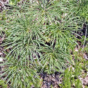 Einzelne Lokalpopulationen innerhalb des relativ kleinen Gesamtvorkommens sind klein bis mittelgroß. Einzigartig vielgliedrige Blätter mit bis zu 320 (gezählt) drei bis acht Millimeter schmalen und sehr lang wirkenden Teilblättchen. Meist zwischen 60 bis 90 Teilblättchen.